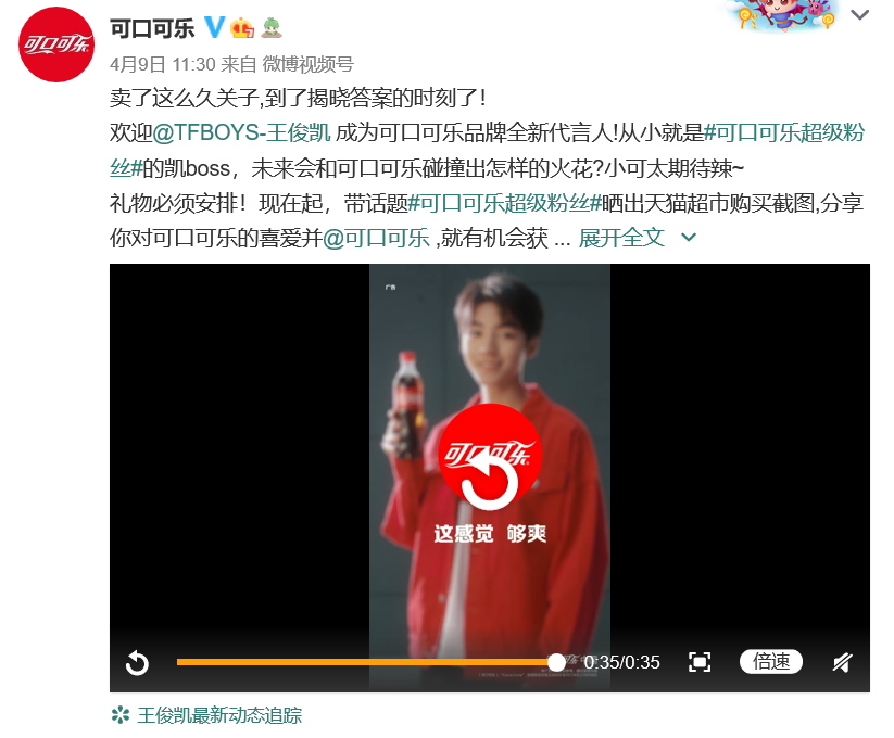 可口可樂在2021年4月9日官宣了新的代言人,新代言人不論是顏值還是粉絲量在娛樂圈都是非常高的,那就是非常受歡迎的王俊凱。