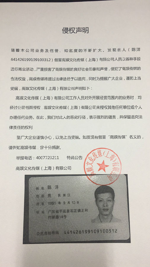 高娛傳媒侵權(quán)聲明