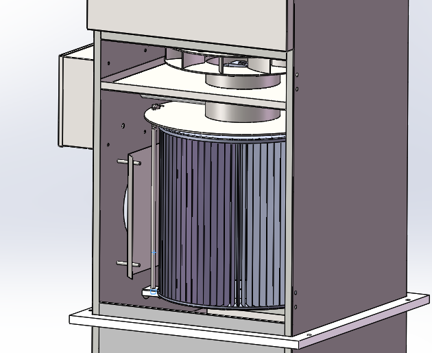 置頂式除塵凈化器由箱體、濾筒、外置式儲灰箱、風(fēng)機(jī)、清灰裝置、控制器等組成,濾芯豎裝,利用沉流式原理,便于粉塵沉降;